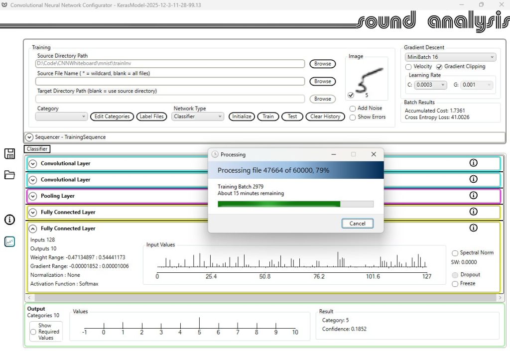 A tool which will allow the user to design a Convolutional Neural Network (CNN), to train and test this network and to save the network at any stage.